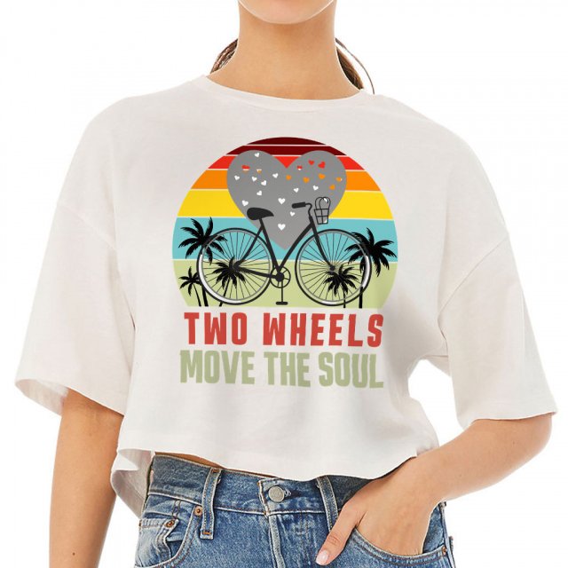 Two Wheels Move the Soul Women’s Crop Tee Shirt – Cycling Lover Cropped T-Shirt – Quotes Printed Crop Top